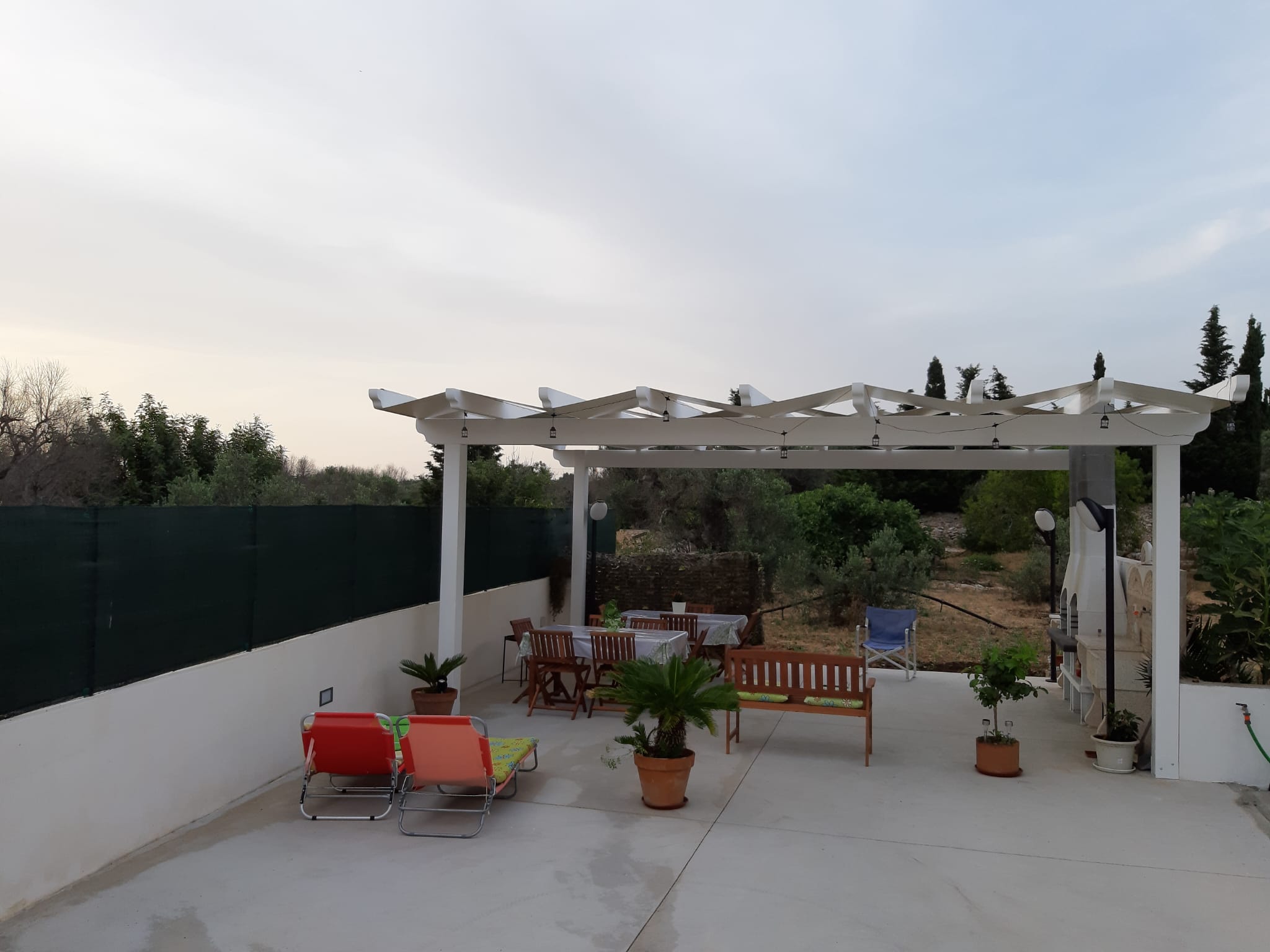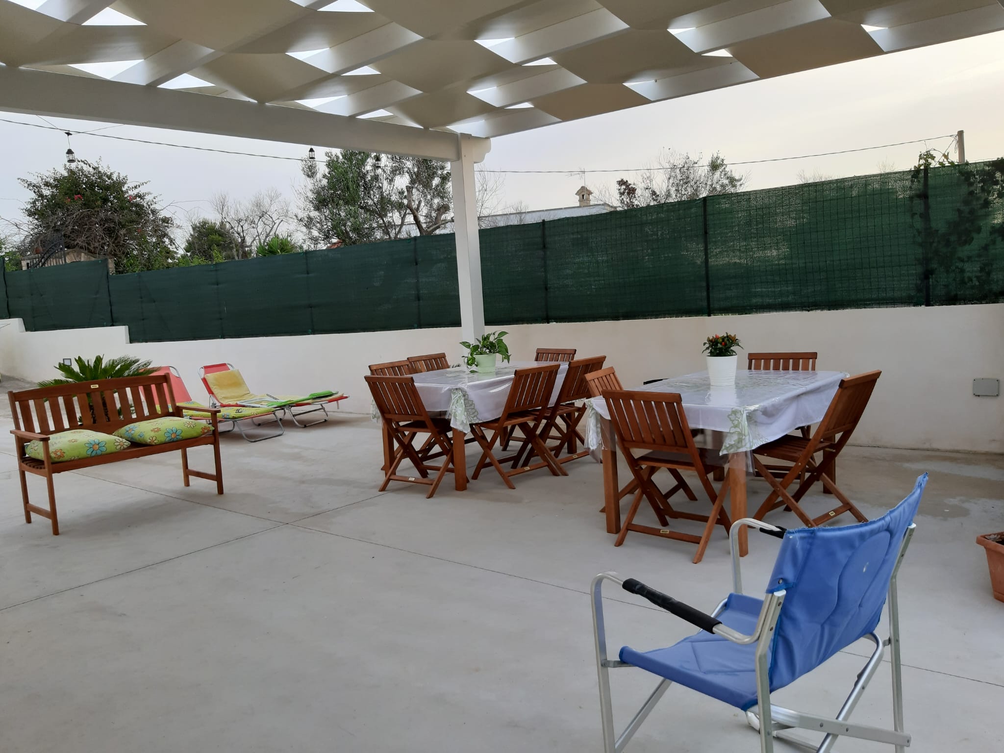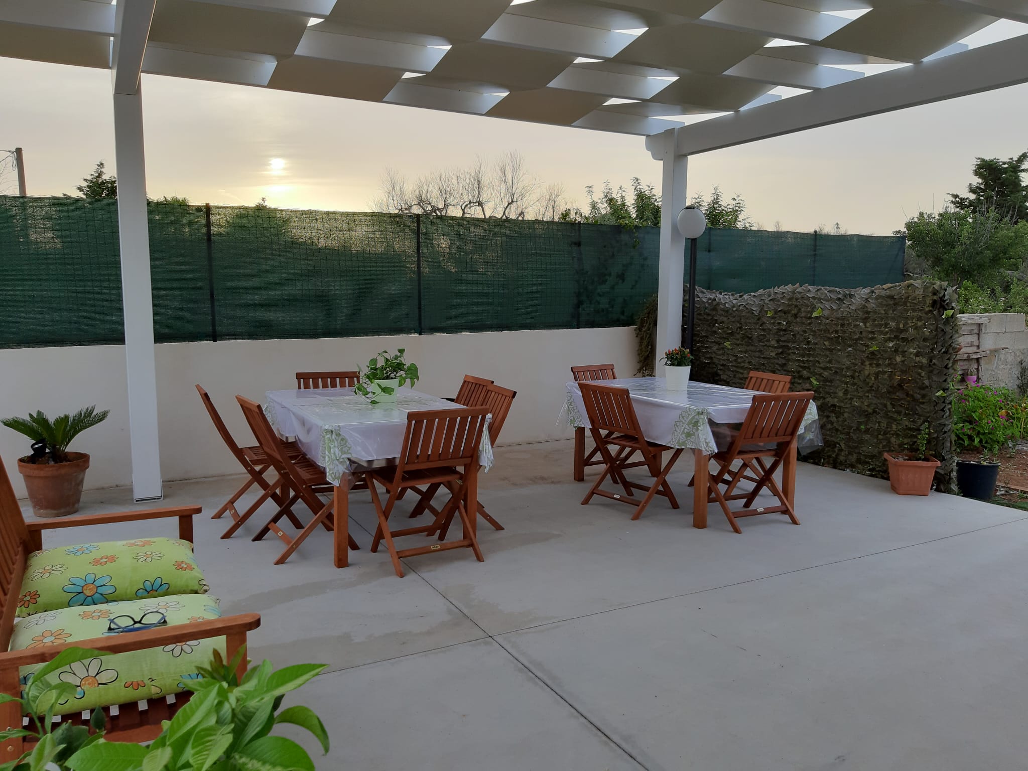Splendida villetta tra la campagna ed il mare, immersa nel verde della natura, composta da 2 stanze triple per un totale di 6 posti letto. Vi sono 2 bagni con doccia e vasca, cucina con forno elettrico e piano cottura, soggiorno attrezzato con tavoli e divano. Finestre dotate di zanzariere. In casa sono presenti Tv, lavatrice, e condizionatore, oltre che a ventilatori. Ampio spazio esterno attrezzato con tavoli da giardino e barbecue. Posto auto privato.