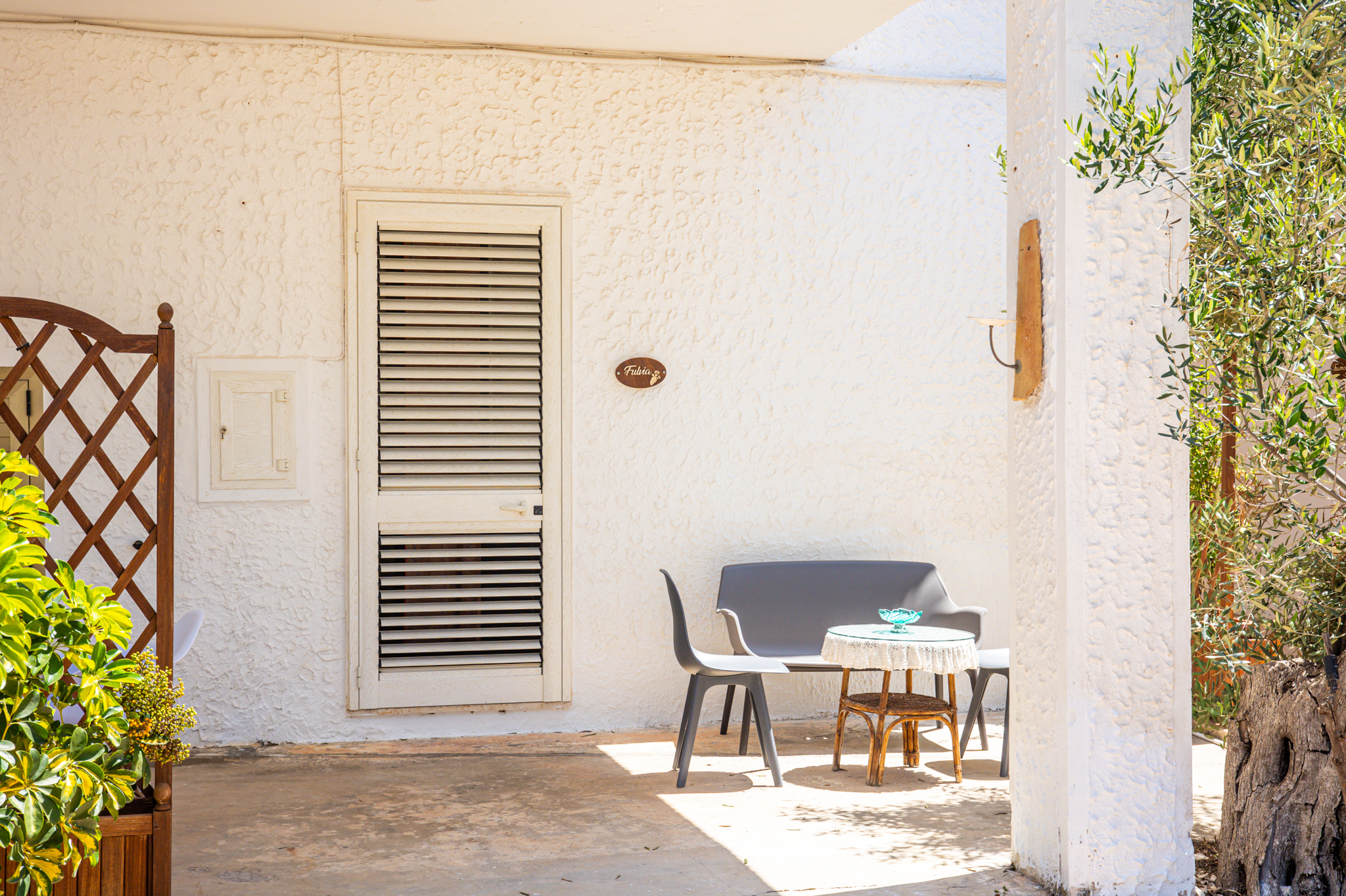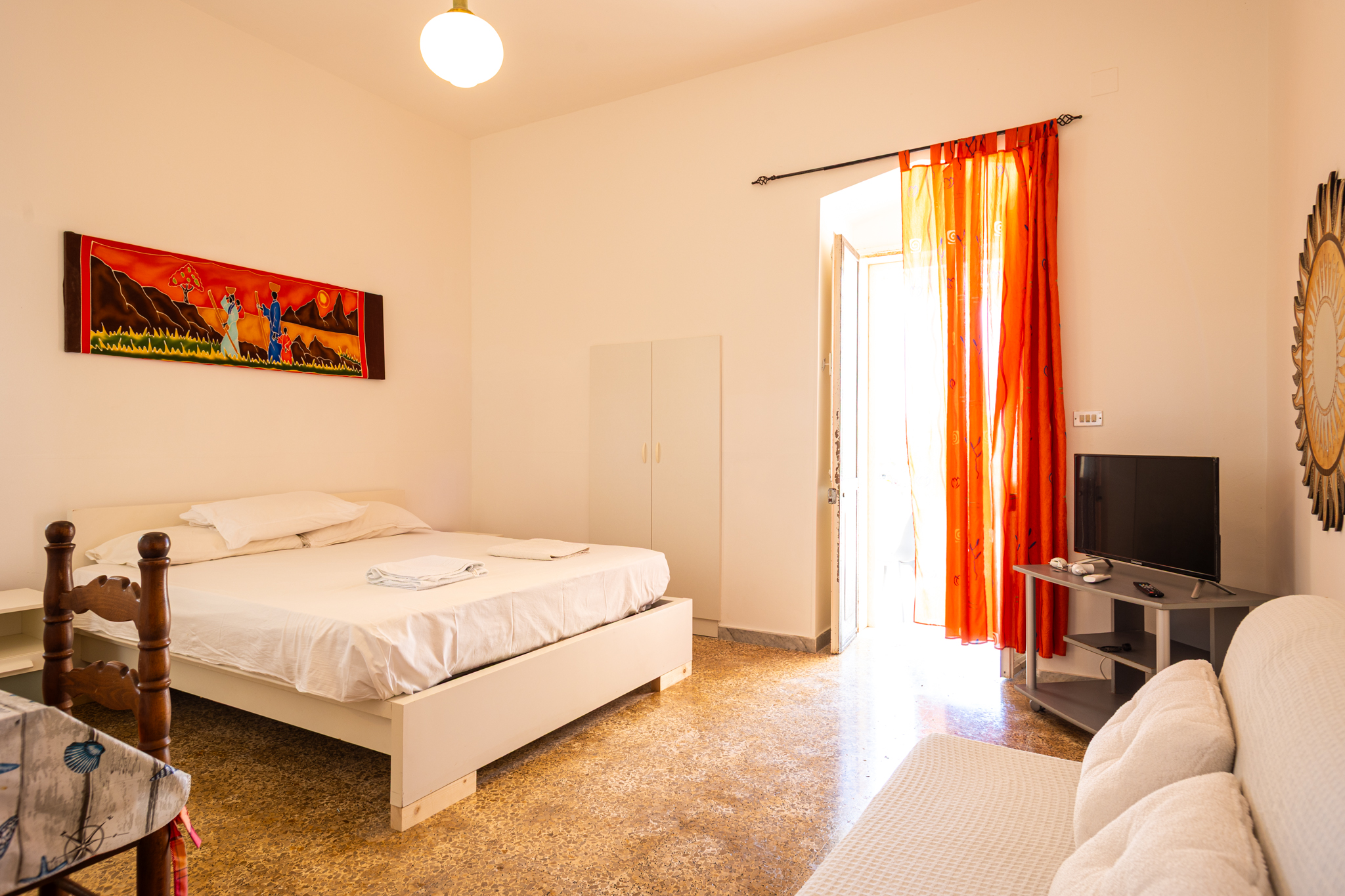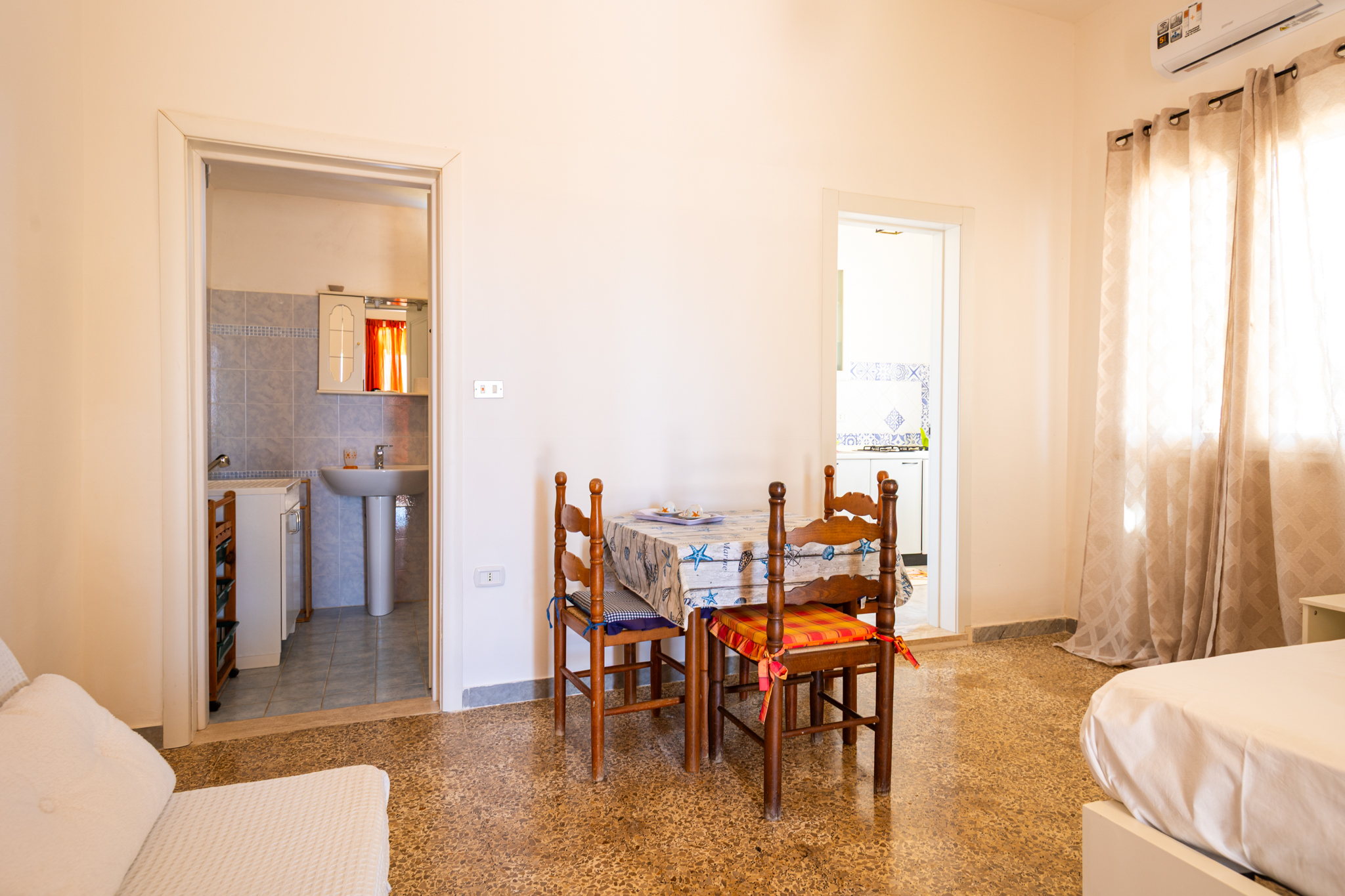 Monolocale con camera da letto matrimoniale, bagno e cucinino. Dalla porta retrostante si acceda ad una verandina coperta ad uso esclusivo attrezzata di tavolo e sedie per godersi le serate in pieno relax. Parcheggio riservato